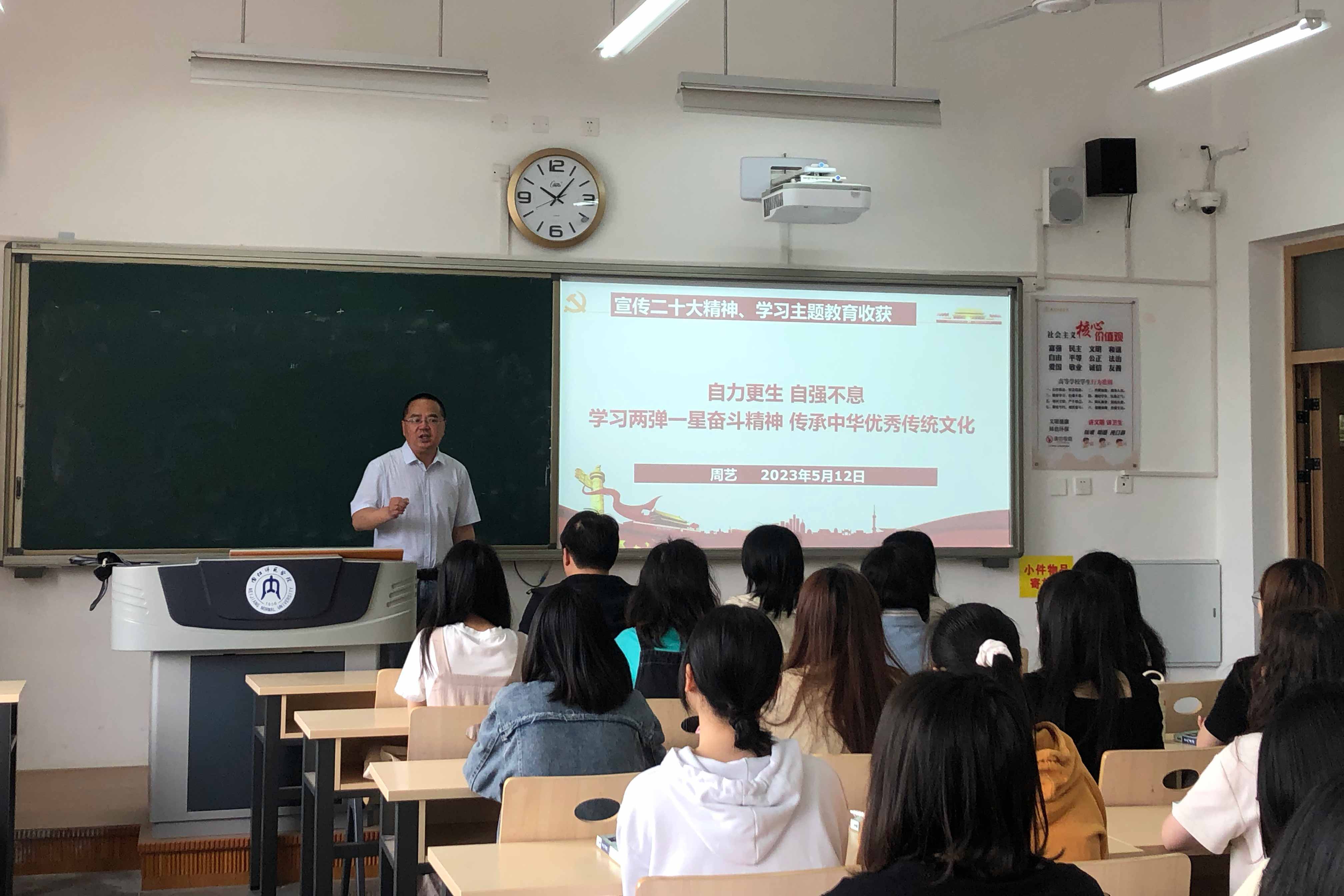 本次专题学习讲座的顺利开展,让同学们对“两弹一星”精神有了更深刻的认识。希望同学们不忘初心、踔厉奋发,在火热的奋斗征程中绽放青春绚丽之花。