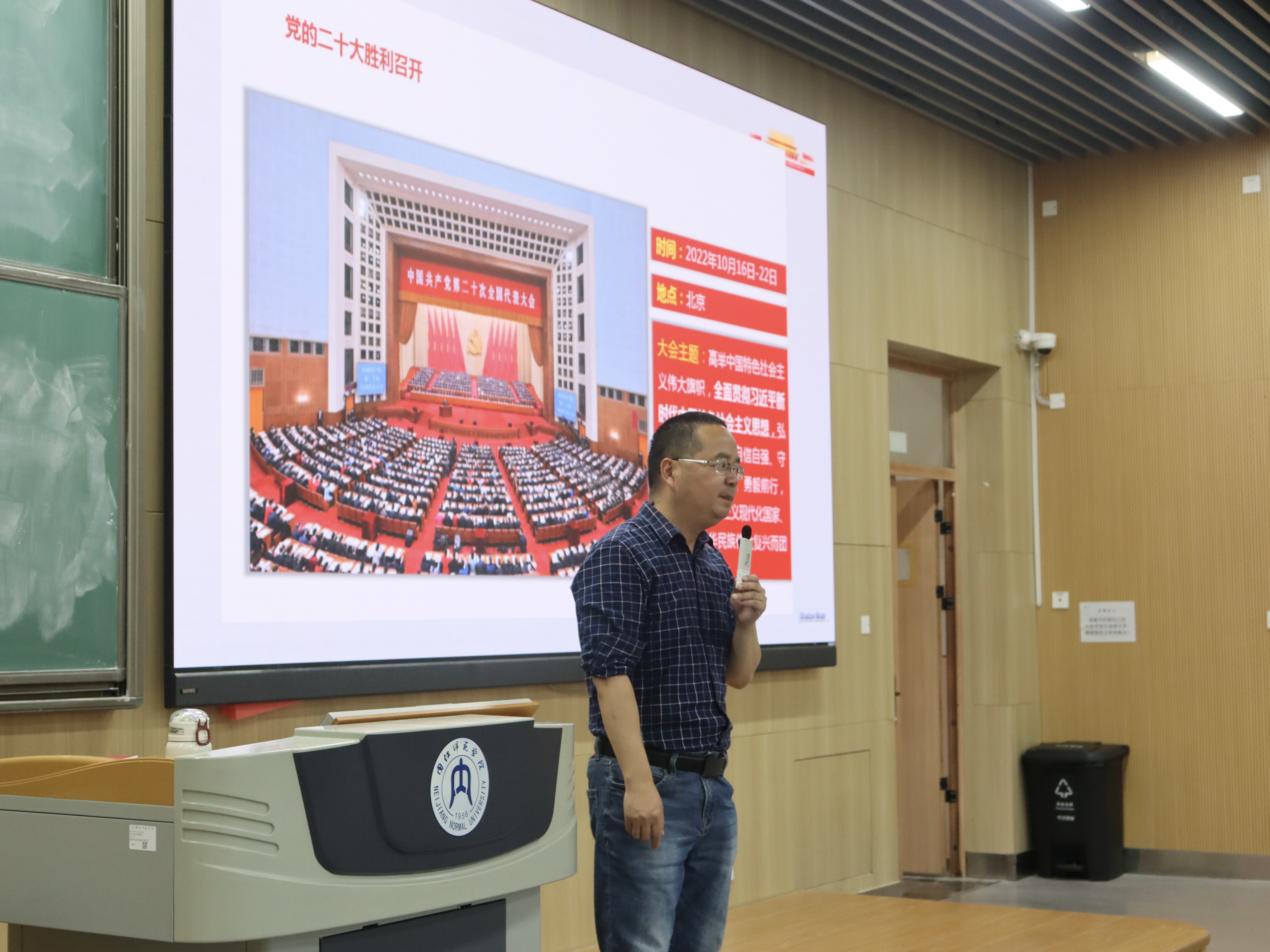 5月19日上午10点20分,我院党委副书记(主持工作)周艺在明德楼B区112教室为全体学生党员讲授党的二十大精神专题党课。