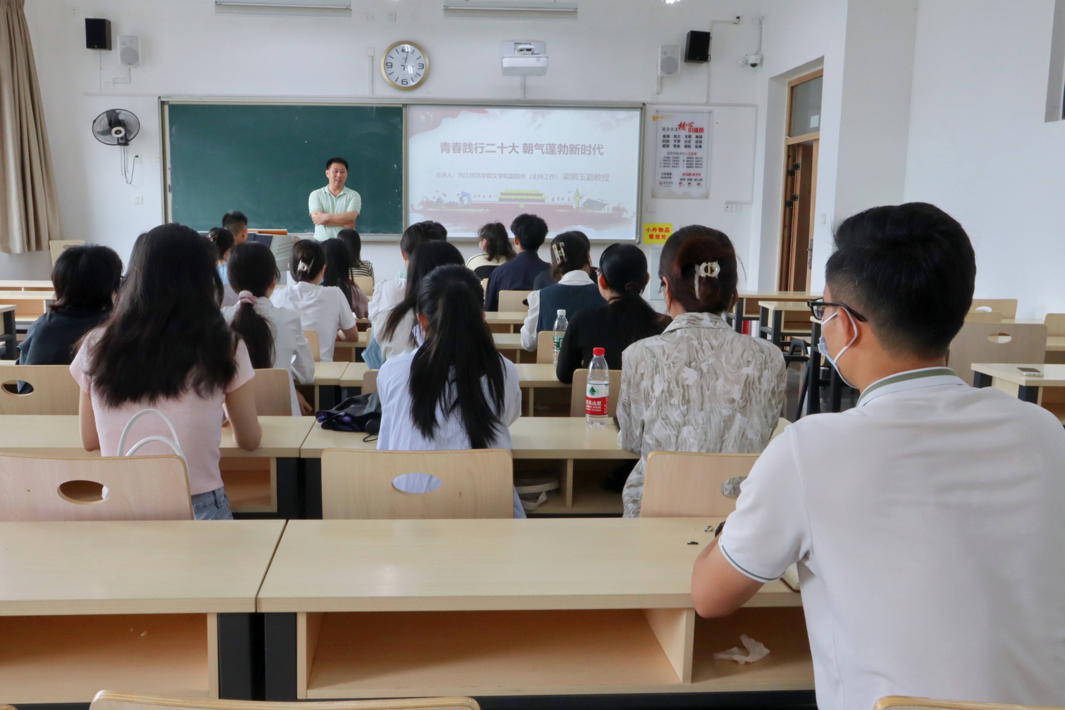 5月26日下午3点,我院党委副书记、副院长(主持工作)梁明玉于明德楼B区122教室开展了以“青春践行二十大,朝气蓬勃新时代”为主题的讲座,我院学工办辅导员甘成望老师及我院2020级4班全体同学共同参与。