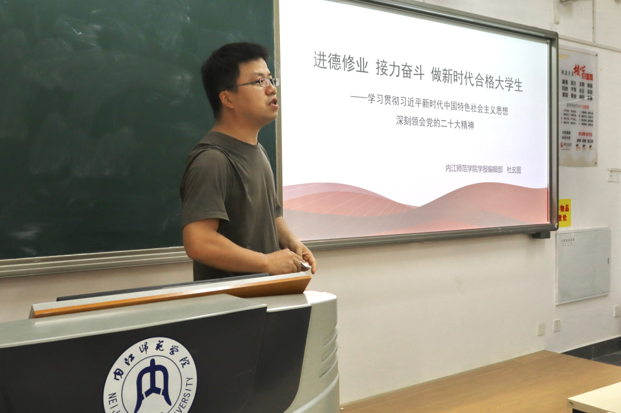 为学习贯彻习近平新时代中国特色社会主义思想,深刻领会党的二十大精神,并进一步增强我院学子的责任感和使命感,6月20日下午三点五十分,我院于明德楼B区122教室开展主题教育学习专题讲座。此次活动由我校学报编辑部副主任杜玄图老师担任主讲人,我院2022级4班全体同学参与。