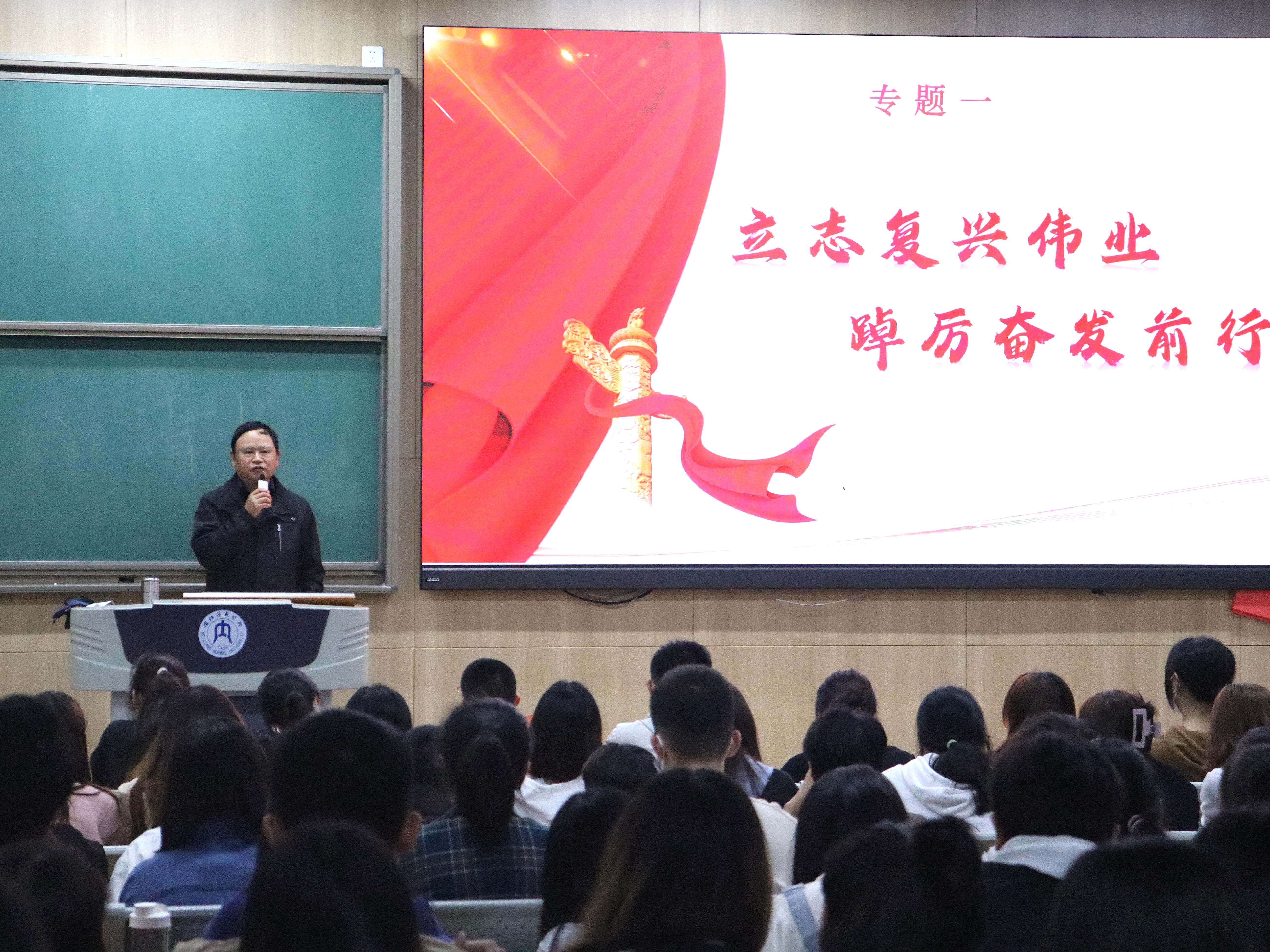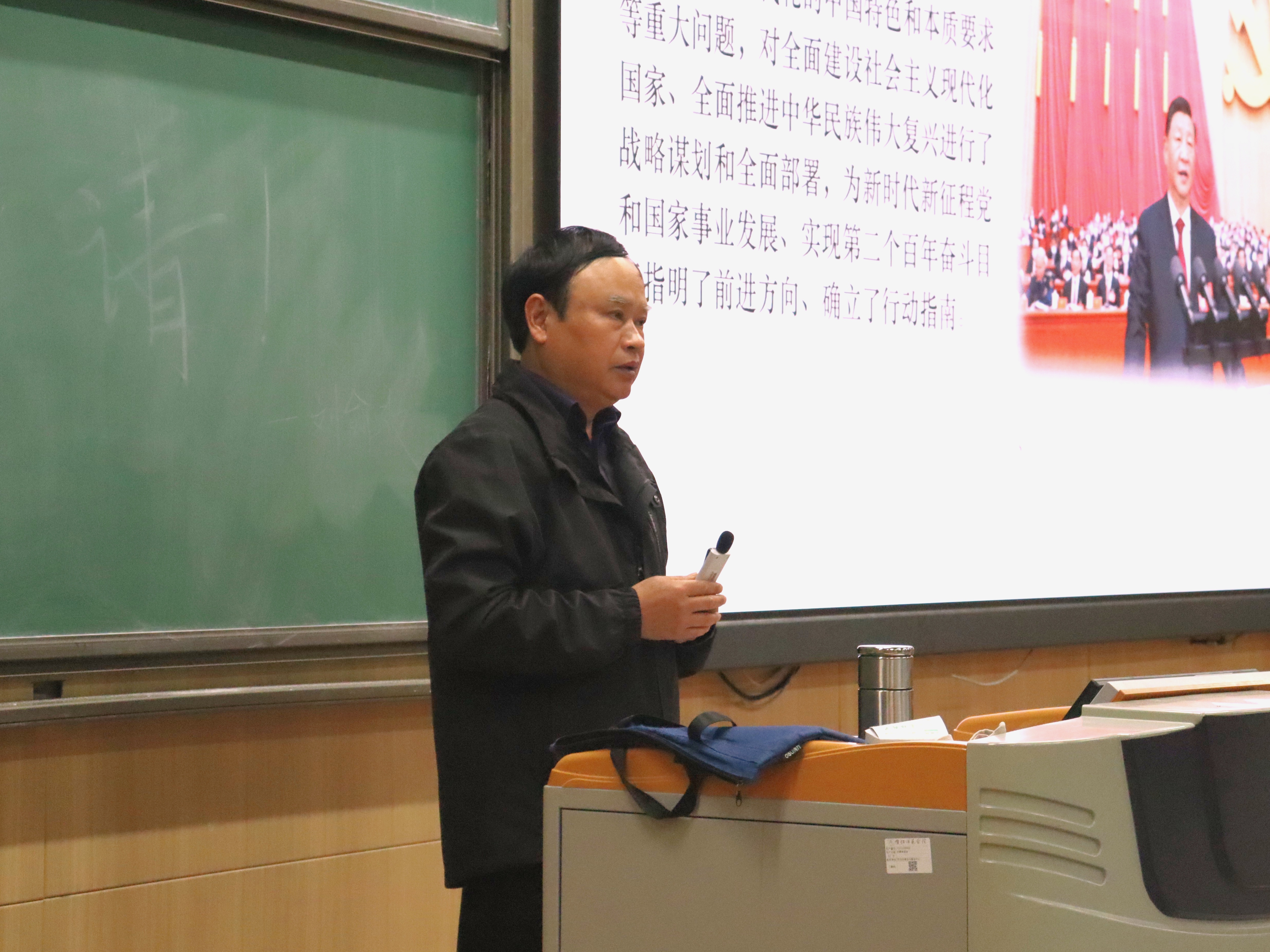 陈校长为联系班级作了“学思悟践二十大 青春向党勇担当”主题教育学习专题讲座。在讲座中,陈校长向同学们介绍了党的二十大会议内容和精神内涵,回顾了党的发展历程。陈校长指出,当代大学生应高举中国特色社会主义旗帜,全面贯彻新时代中国特色社会主义思想,弘扬伟大建党精神,自信自强、守正创新,踔厉奋发、勇毅前行,将习近平总书记的一系列重要论断内化于心、外化于行,立志做有理想、敢担当、能吃苦、肯奋斗的新时代好青年,积极担起时代所赋予的责任与使命。随后,陈校长结合自己丰富的人生经验及当下的社会形势,表明青年大学生施展才干的舞台无比广阔,实现梦想的前景无比光明,勉励同学们自觉肩负起历史赋予的神圣使命,争做志存高远、勤于学习、敢为人先、顽强拼搏、团结奋斗的新时代好青年,让青春在全面建设社会主义现代化国家新征程上绽放绚丽之花。最后,陈校长走进同学之中,与同学们讨论学习、生活上的问题,为同学们解疑答惑。陈校长表示,与同学们一起学习,感受到了同学们的好学精神,看到了当代青年的热血向上的精神面貌,希望同学们能够坚定理想信念,不负时代众望,在奋斗中成就人生。