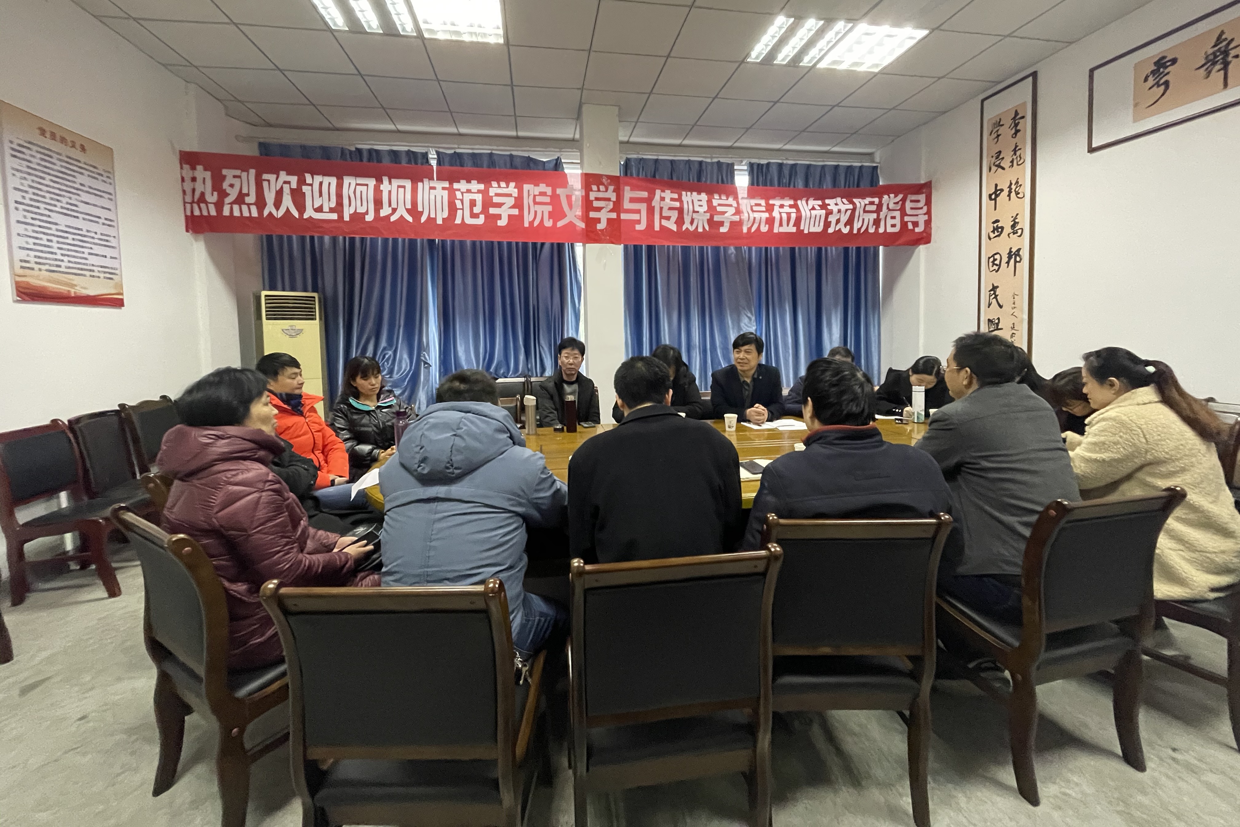 12月4日上午,阿坝师范学院文学与传媒学院院长谭文旗教授一行8人来我院开展教学交流。我院党总支书记李达军,院长刘云生,党总支副书记刘正丽,副院长张文彬、梁明玉,以及我院教研组人员参与此次交流活动。活动由院长刘云生主持。
