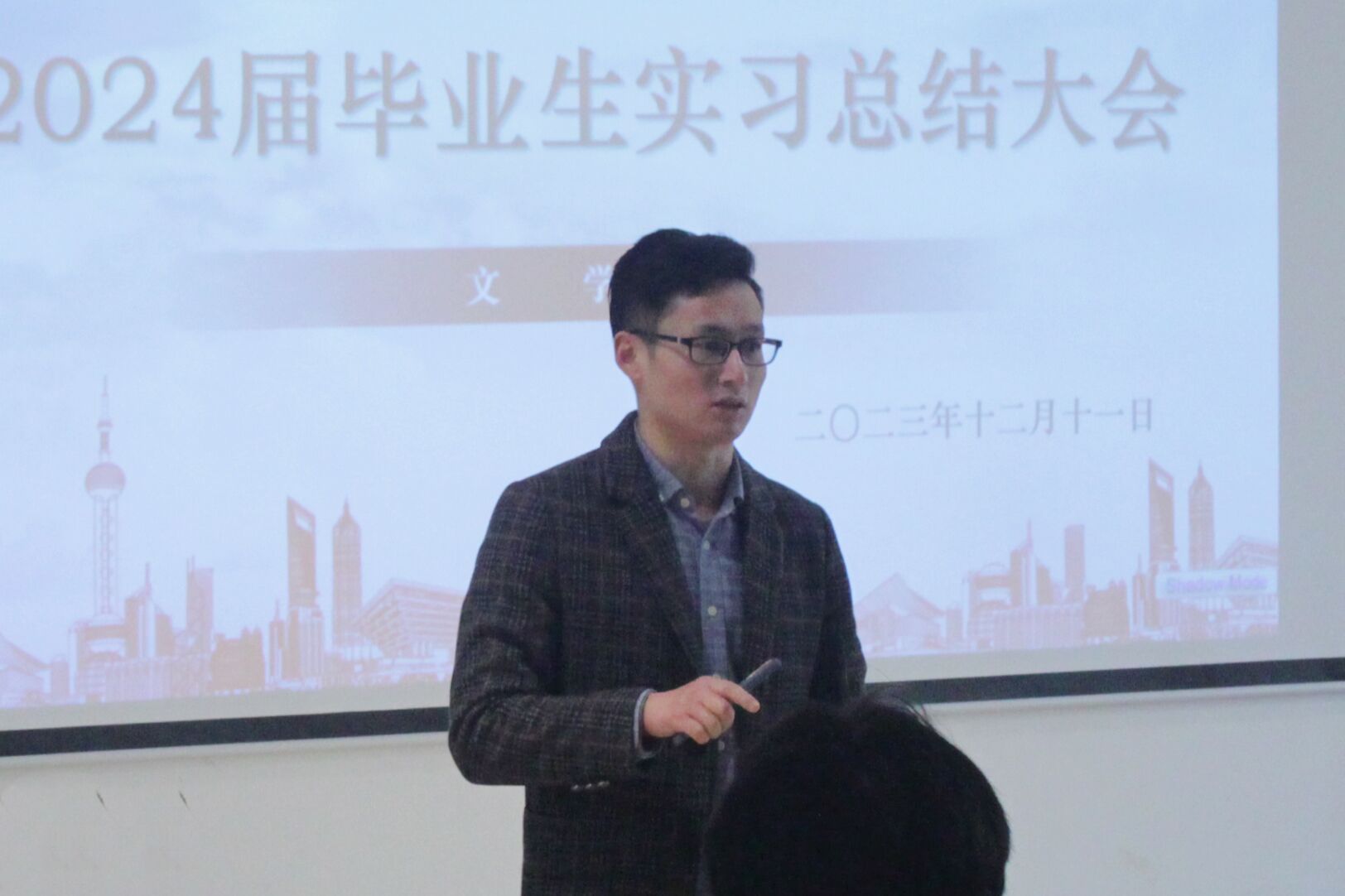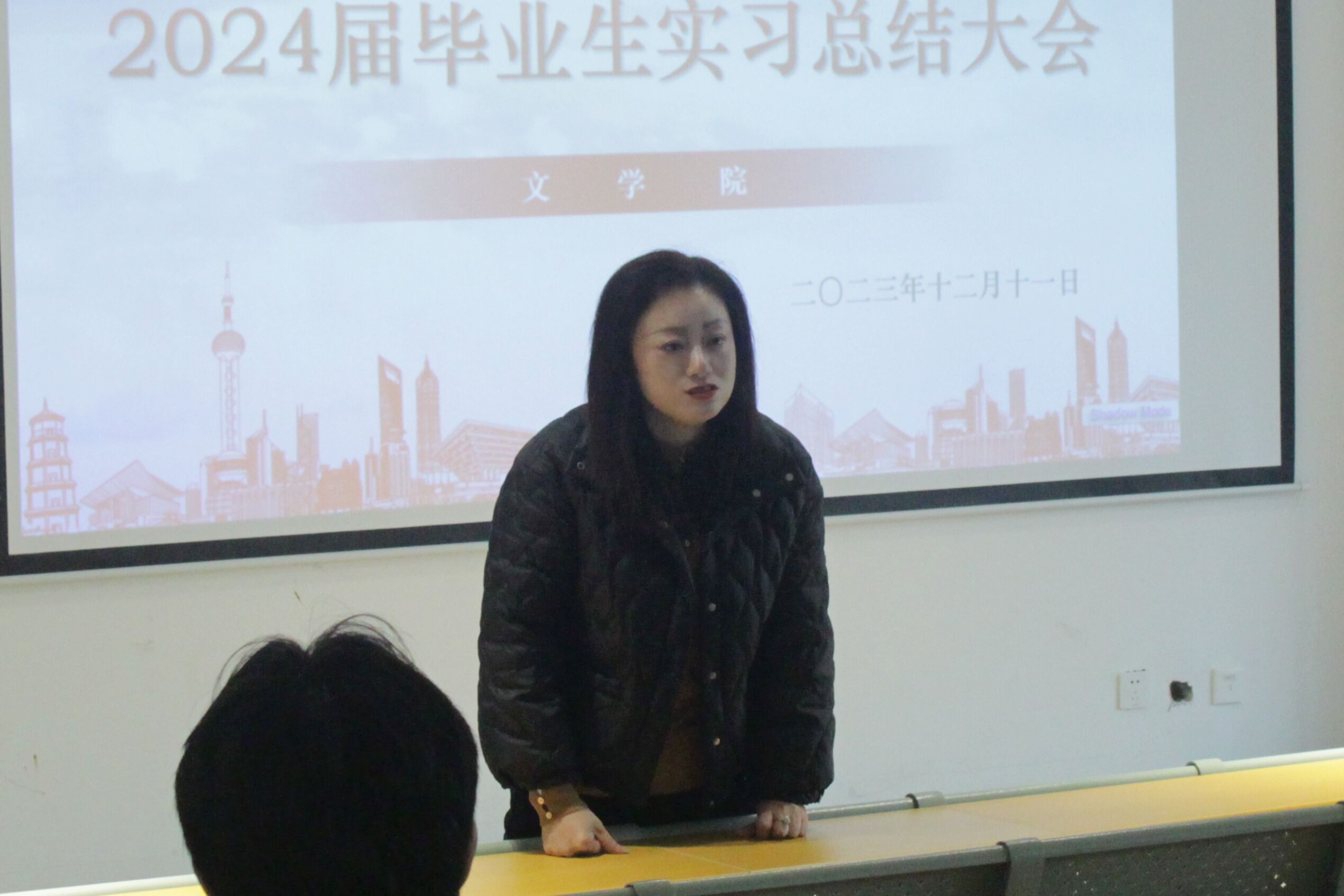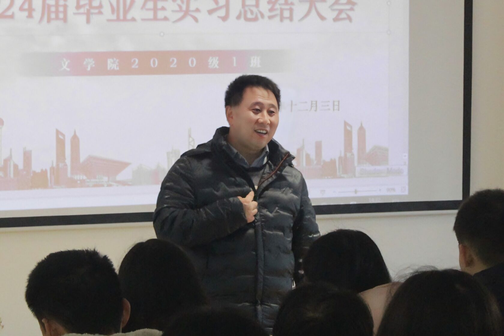 最后,甘老师就本次大会作出总结。他要求各位同学积极与老师交流沟通,时刻关注招聘信息,争取在有限的实习时间中汲取更多营养,收获更多经验。