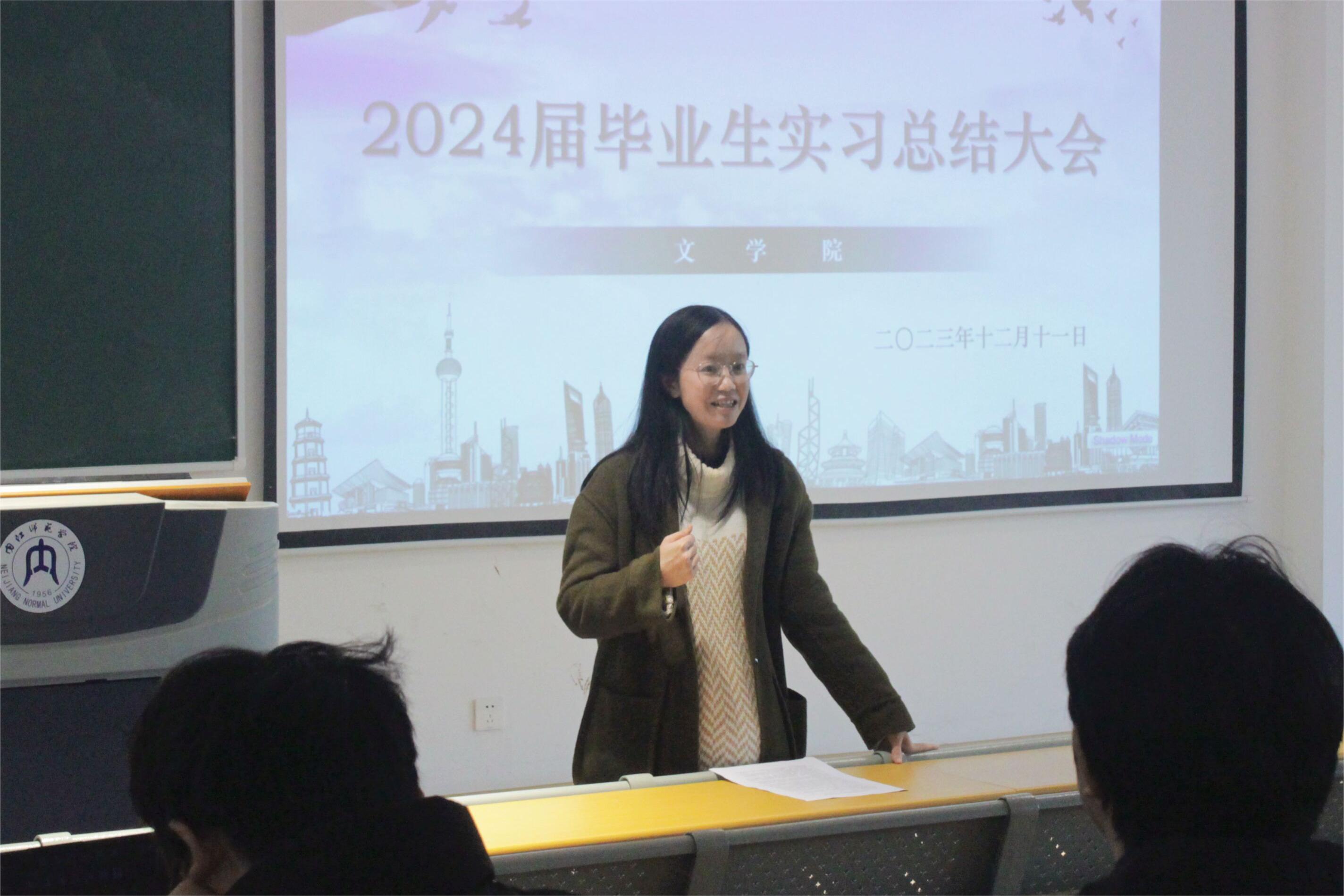 为提高学生实践能力,分享实习心得,促进共同成长,让毕业生们在就业之路上走得更稳。11月12日下午2点,我院在培训中心101教室召开了2024届毕业生实习总结大会。本次大会由我院党委书记周艺,党委副书记、副院长(主持工作)梁明玉,党委副书记、纪委书记刘正丽,院长助理王昕,学工办辅导员甘成望,我院教师徐玲、冯海燕主讲,我院毕业实习生参与。
