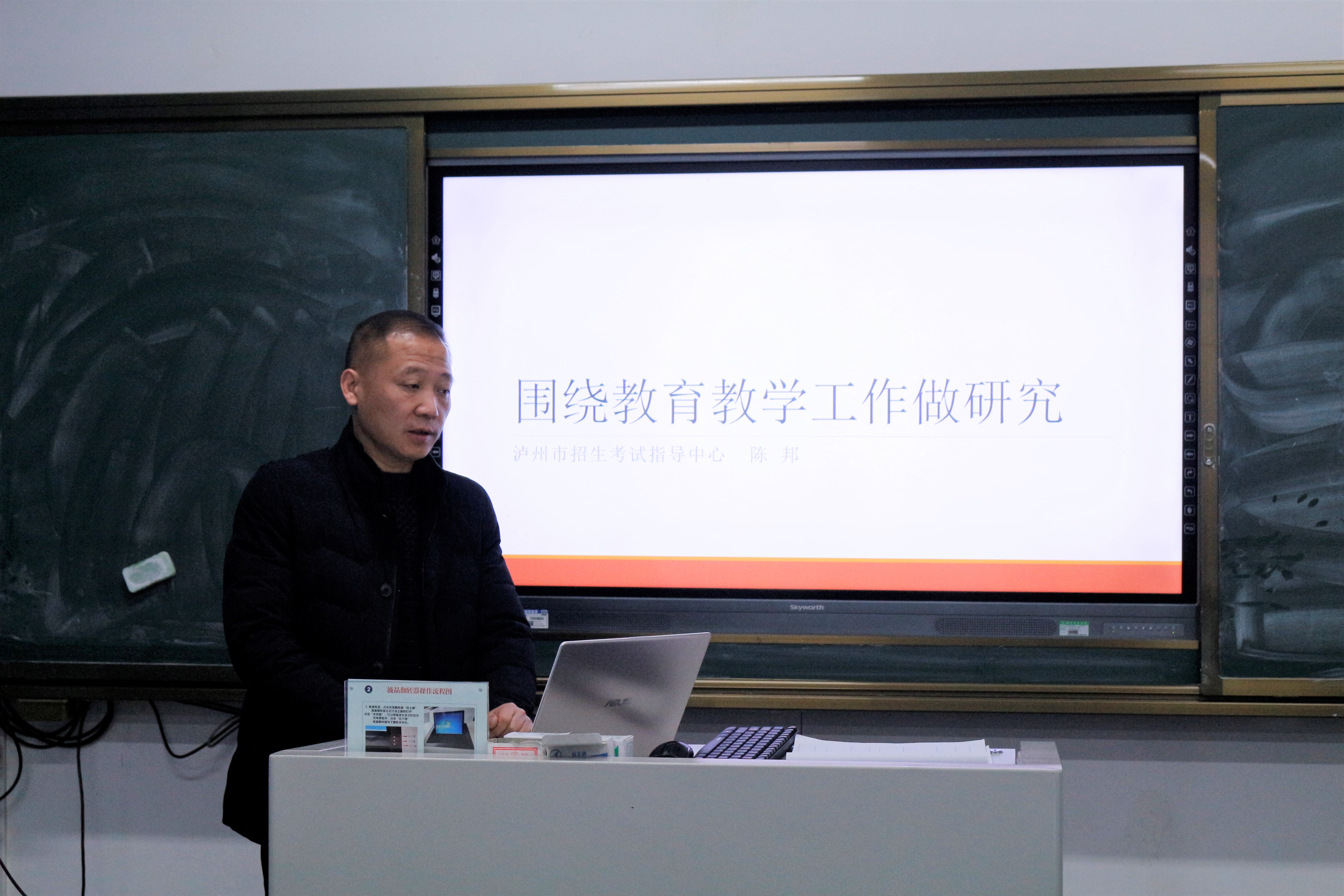 12月23日上午,来自泸州考试中心的特级教师陈邦于我校第二教学楼202教室开展了以“围绕教育教学问题做科研”为主题的讲座,国培计划小组部分学员参加。本次讲座由我院吴飞老师主持。
