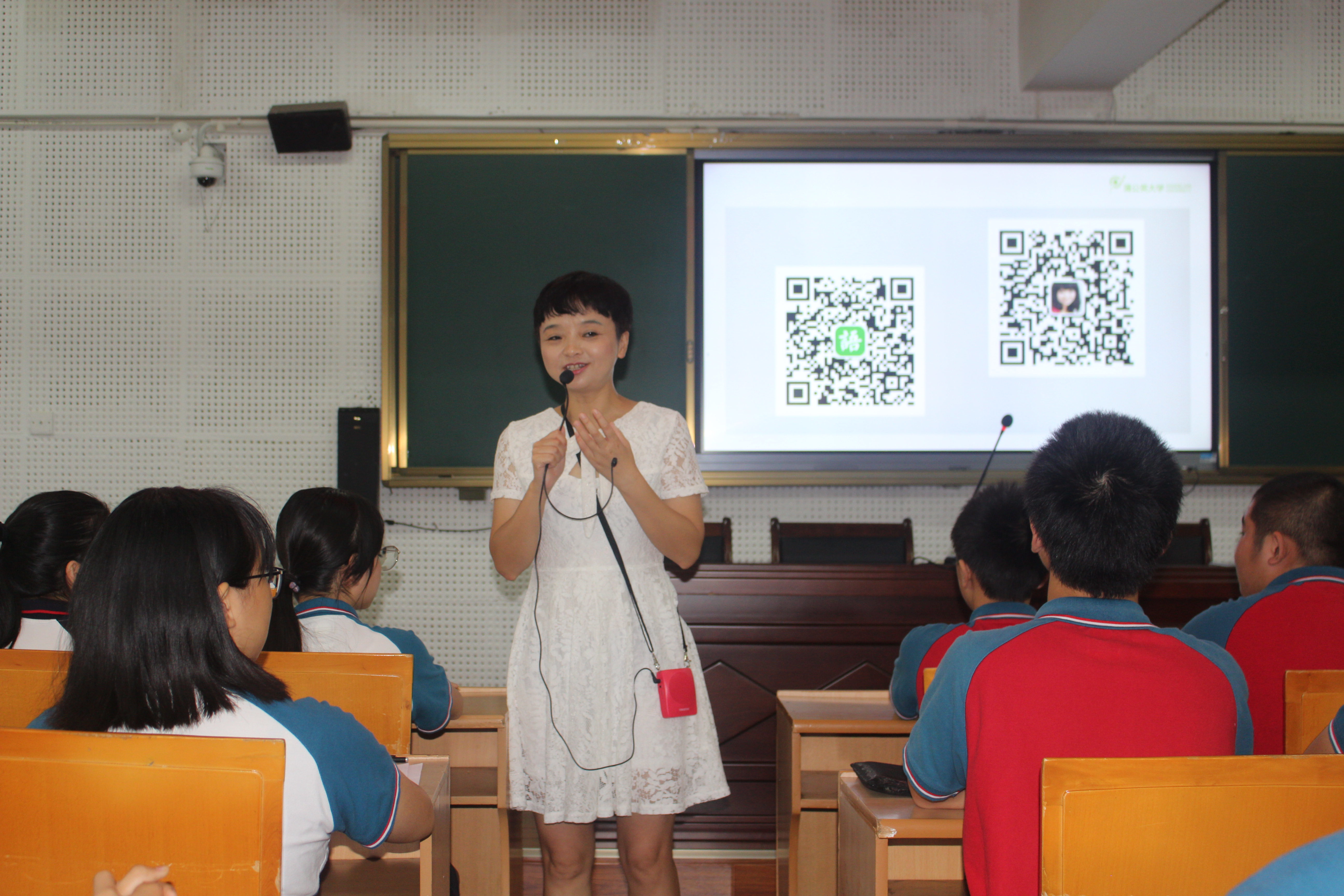 讲座伊始,王老师主要围绕“语言暴力对人的伤害”这一主题进行展开,希望通过片段取材、广泛勾连、同类整合、突破一点四种学习方式提高学生理解语文的能力。她以《范进中举》为例,阐释了胡屠户的语言暴力对亲人的伤害,还从看篇、看层、看点、看句、看词、看意六方面来研读文本,让同学们声情并茂地朗读、表演经典文本选段,让同学们深刻感受到“胡屠户”这一施暴者的形象。同时,她还结合电影《悲伤逆流成河》为大家详细讲述了文章《孔乙己》和《窃读记》,分别以语言暴力之调戏玩弄型、语言暴力之冷漠不助型来形容这两篇文章的暴力行为,极大地激发了同学们学习语文的兴趣。接着,王老师通过展示几幅与嘴巴有关的图片引导同学们创造一句话来表达语言正面功能和反面功能的思辨理解,同学们踊跃发言,现场气氛十分活跃。
