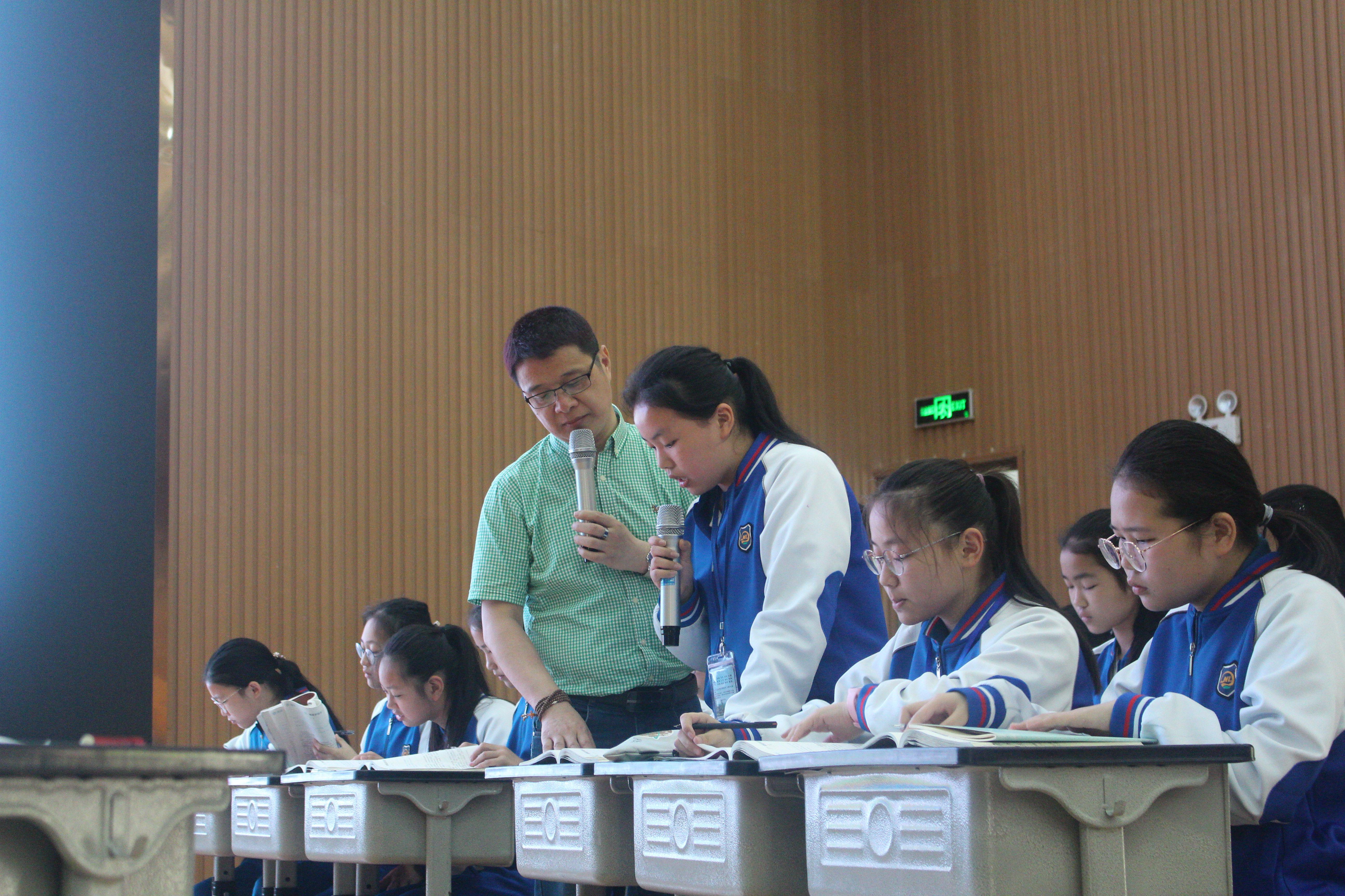 讲座上半场,肖培东老师与内江市第六中学的初一学生为我院同学们演示了一堂示范课。期间,他以《紫藤花的瀑布》为例,让学生分别朗读,从中体会其中的深意,体会作者的情感。学生争先朗诵,课堂氛围热烈。课后,肖培东老师又与我院同学们进行了更加深入的探讨。他指出现在的语文教学已经脱离的正轨,作为一名语文教师,不应该太过注重功利,应该眼中有语文,心中有学生,学会爱学生,教会学生“读书”。随后,他又提出语文教学不是基于“教”的学,而是基于“学”的教学。学是课堂存在的唯一理由,老师应该注重于学生的学,不能因为学生不够优秀而放弃他。