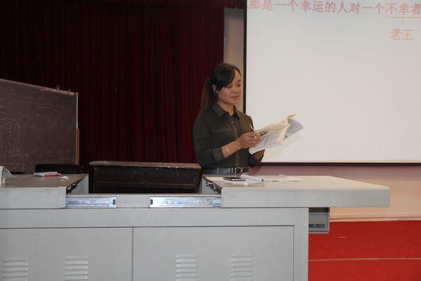 试讲结束后,各位学员也发表了自己的见解。来自隆昌的罗崇林老师对刘霞老师进行点评,他认为,作为老师应牢牢抓住主人公的动作、语言描写,比如:应对《老王》中杨绛的愧疚的原因加以深究。来自渠县贵福二校的蒋强老师对此次说课提出几点看法:“我认为,对于重点句意的把握方面,应该让学生探讨;其次,在整个课堂结构中,应该添加作业布置的环节,对随堂写作要进行延伸。”对于刘霞老师自然到位的讲解,蒋老师也引用“腹有诗书气质华”来夸赞。