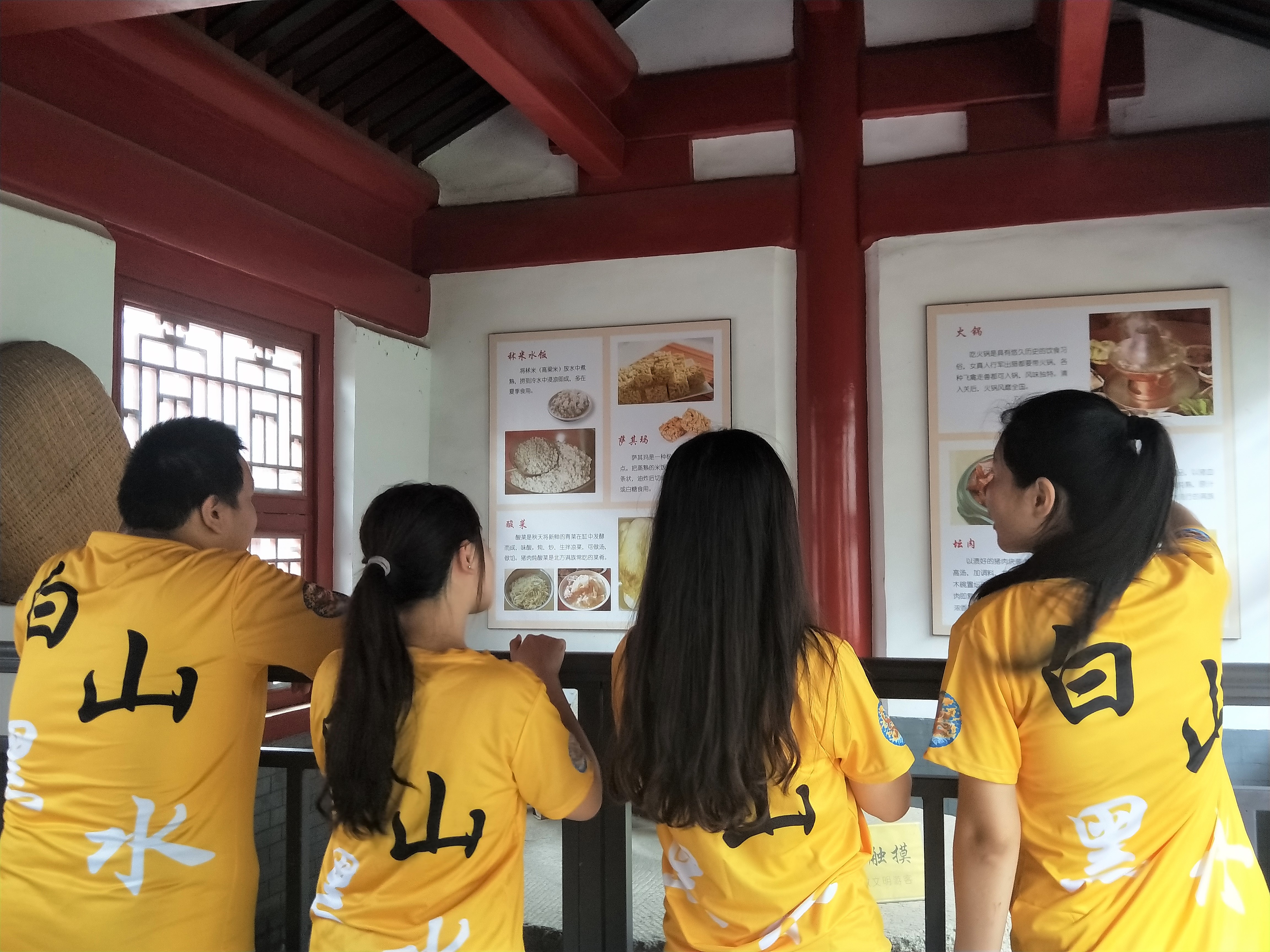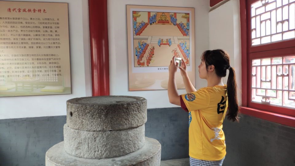 最后,考察队来到故宫的满族风情图片展区。通过图片及讲解,在了解满族建筑之余,对满足的传统习俗、妆容服饰、婚丧习俗等进行了了解,为接下来研究清朝发祥地乌拉街提供了基础。