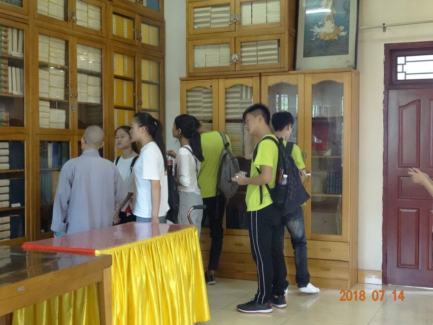 考察队员们与寺内本净师父交流,了解高峰寺的起源、发展等。本净师父介绍到每年的三月三是当地的一个习俗,人们祈愿、吃斋饭,规模宏大。不仅有本地人参与这个习俗,更有不少外地人慕名而来。而且由她主持在寺内建立的图书馆,不仅有佛教经书,更有《资治通鉴》等史书、科技类书籍、各类工具书等,馆藏图书众多,涉猎范围广泛。这些图书有的是可供借阅的,有的是可赠送的。本净师父表示,“现在的寺庙也不过是人们心灵慰藉的地方,我们要做的就是提供一隅净土。‘书是人类进步的阶梯’,人要终生学习,要广泛学习,只有在不断学习中才能进步,并把学到的知识运用到工作生活中,国家建设中。”