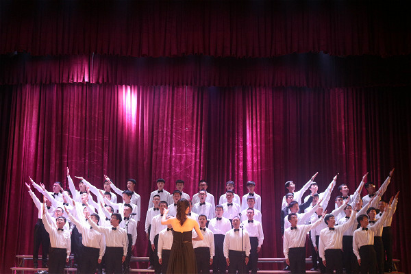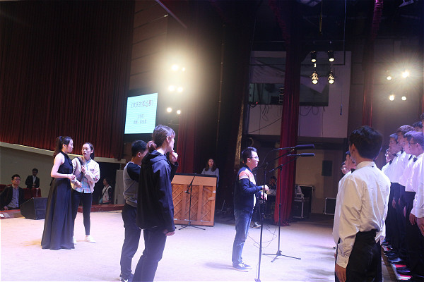 为确保我院大艺节合唱比赛取得好成绩,我院合唱队11月5日下午7点在东区礼堂进行带妆彩排。我院党总支副书记覃华艳,学工办主任许小涛,辅导员曾晓芸亲临现场指导。