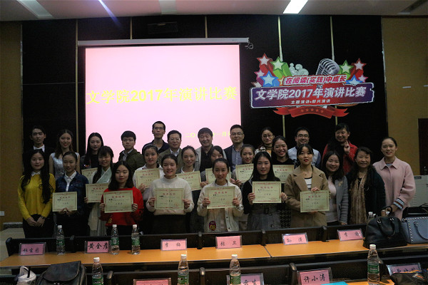 晚上九点半左右,参赛选手与评委老师、嘉宾合影留念,我院2017年演讲比赛决赛圆满结束。