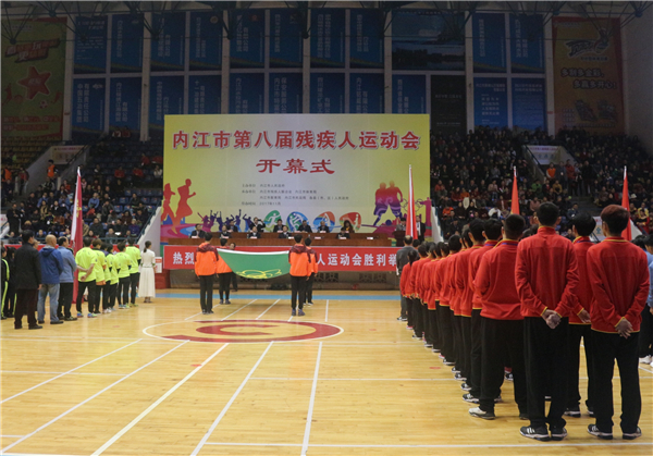 伴随着背景音乐,内江市爱心志愿者协会方队徐徐入场,与全场嘉宾一起参加升旗仪式。仪式之后,内江市人民政府副市长陈朗进行开幕式发言。陈市长表示,残疾人事业是一场崇高的事业,运动员们要在以前获得的荣誉基础上再创新高。随后,陈市长宣布内江市第八届残疾人运动会正式开始。