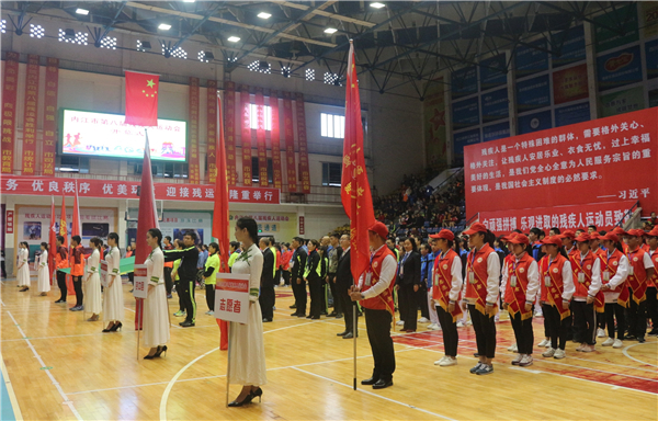 为进一步弘扬残疾人“自尊、自信、自立、自强”精神,推动我市残疾人体育事业发展。2017年11月17日上午九点,内江市第八届残疾人运动会开幕式在梅家山体育馆隆重举行。我院共23名志愿者作为内江市爱心志愿者协会方队的成员参加了本次残疾人运动会开幕式。此次志愿者活动由文学院团总支组织部组织。