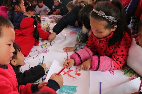 大赛面向金紫铺村全体留守儿童,分为学龄前和学龄后两个参赛小组。赛前,小朋友们纷纷上台展示了自己准备的诗歌朗诵,精彩的表现赢得了家长和老师的高度赞扬。上午9点半,比赛正式开始。在“绘中国世纪蓝图”环节,学龄前的小朋友纷纷踊跃上台,为一幅三米长的挂图着色,将原本的黑白图画绘制得五彩斑斓。接着,在“听画”环节,小朋友们还根据主持人给出的词语在图上大胆作画,为挂图平添童趣和生机。在“汉字听写”环节中,学龄后的小朋友们表现得十分出色,他们认真聆听,努力思考,积极作答,现场你追我赶的氛围浓厚。