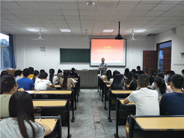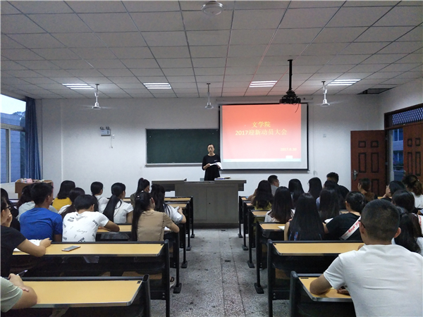 为确保我院迎新工作的顺利开展,8月30日晚7点,我院2017年迎新动员大会在中文楼203教室召开。我院党总支副书记覃华艳、辅导员许小涛,17级班主任助理、16级各班班长及文学院团总支学生会干部参加会议。