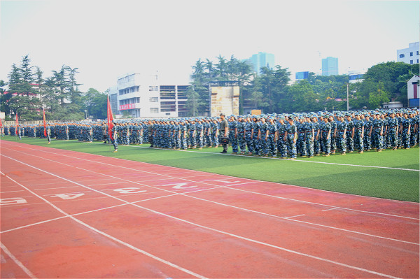 新生们在军训教官和辅导员的带领下,高擎连队番号、校旗,从西区大门出发,沿兰桂大道,汉安大道、兴隆路、大千路徒步行走。本次活动受到了校方的大力支持,并在医疗服务、交通等方面作了充足准备。拉练途中,为鼓舞士气,军训教官组织大家一路高唱军歌、高喊口号。同学们不畏路途遥远和天气炎热,始终保持着高昂的士气、饱满的热情,按照既定路线圆满完成了任务。