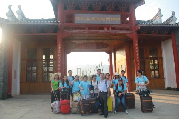 2015年7月12日,是女书探秘队出发的日子。早上7点,阳光微露,而队员们已经在刻着“内江师范学院”的石碑前,拿着队旗拍照合影留念。晨曦微醺,光晕铺在队员们的脸上,洋溢着青春的色彩。时间紧迫,没时间吃早饭,又匆匆爬上赶往重庆的汽车,一路欢歌笑语。