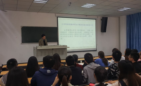 10月15日下午在中文楼304 ,文学院组织教师学生开展本科教学工作审核性评估访谈座谈培训。