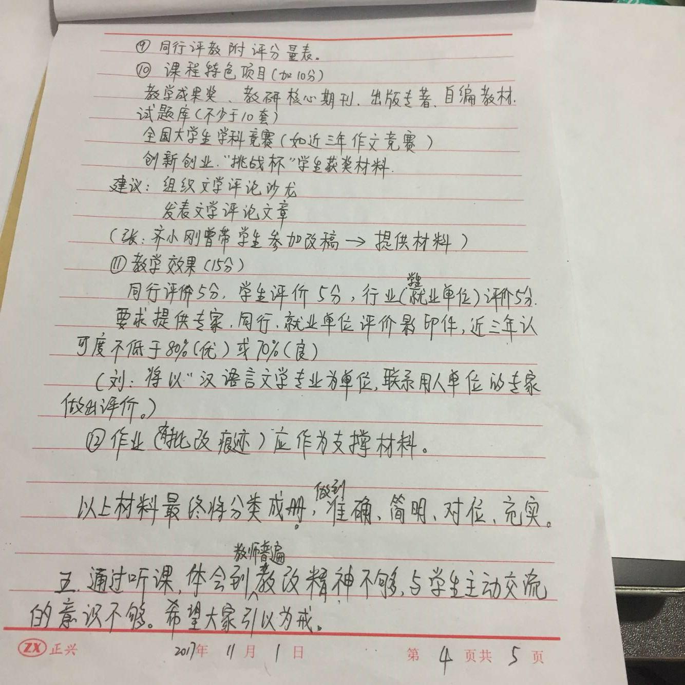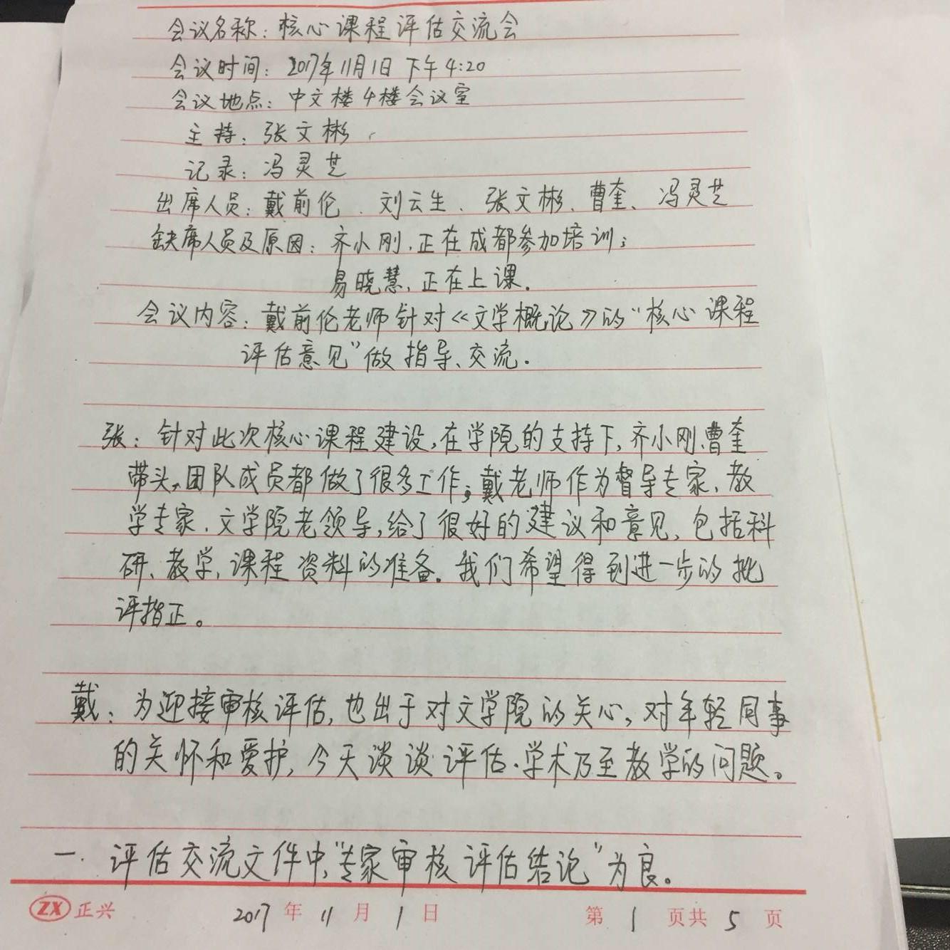 会议内容:戴前伦老师针对《文学概论》的“核心课程评估意见”做指导、交流