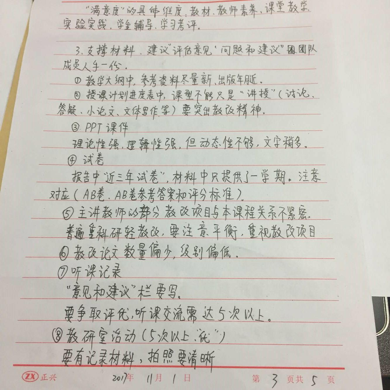 听课————根据“6+1”指标,先看自评报告,与支撑材料一一对应检查————对应自评材料中的结论,写专家评定结论,打分