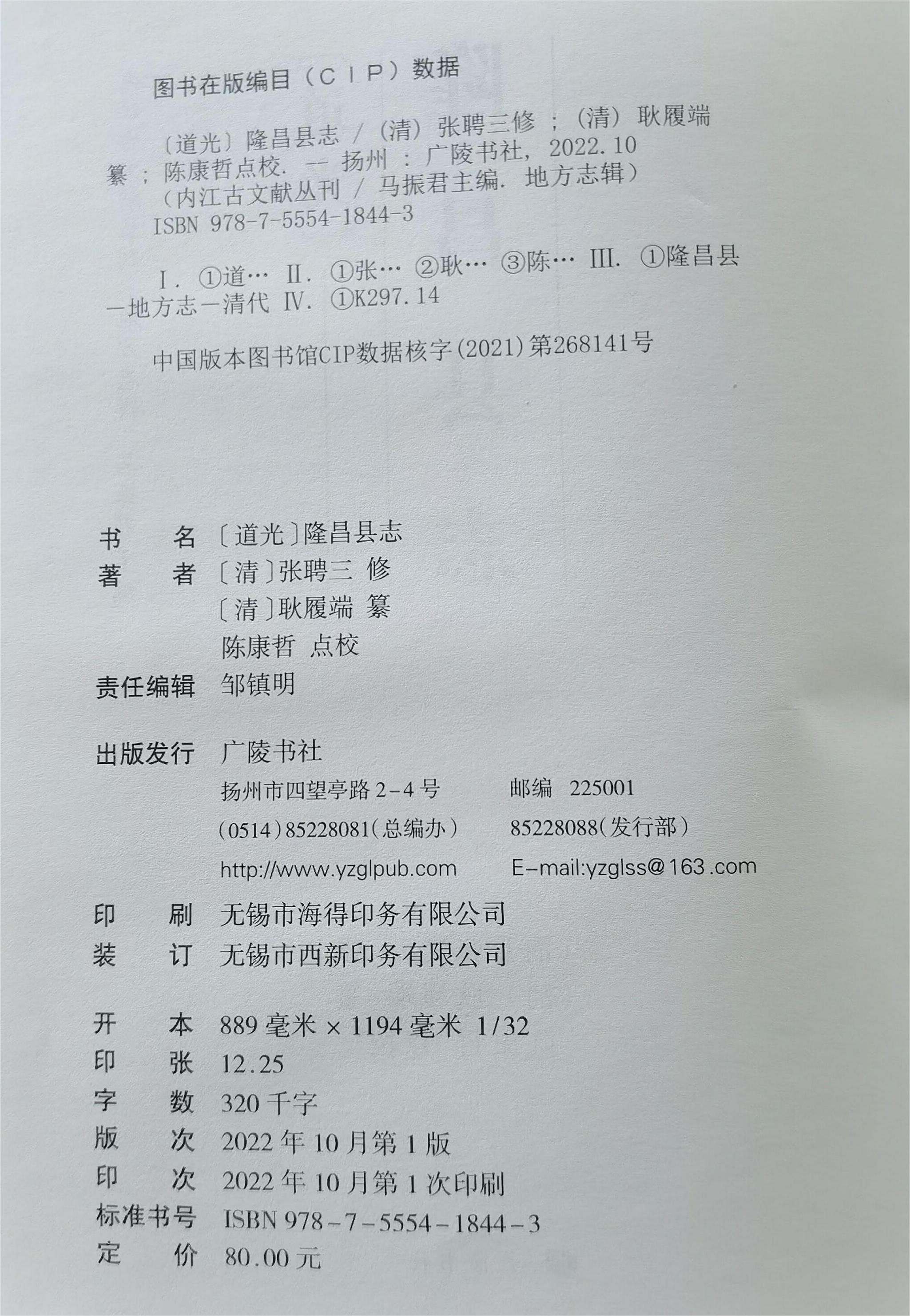 2022年10月,内江古方志《〔道光〕隆昌县志》由广陵书社出版发行。此志原由张聘三(清代)修、耿履端(清代)纂,由内江师范学院文学院古籍整理研究所教师陈康哲点校,是内江师范学院2020年校级科研青年项目“《〔道光〕隆昌县志》”(2020QN08)、一流学科建设项目“中国语言文学”、古籍整理研究所规划项目、首批领军人才建设项目的研究成果。