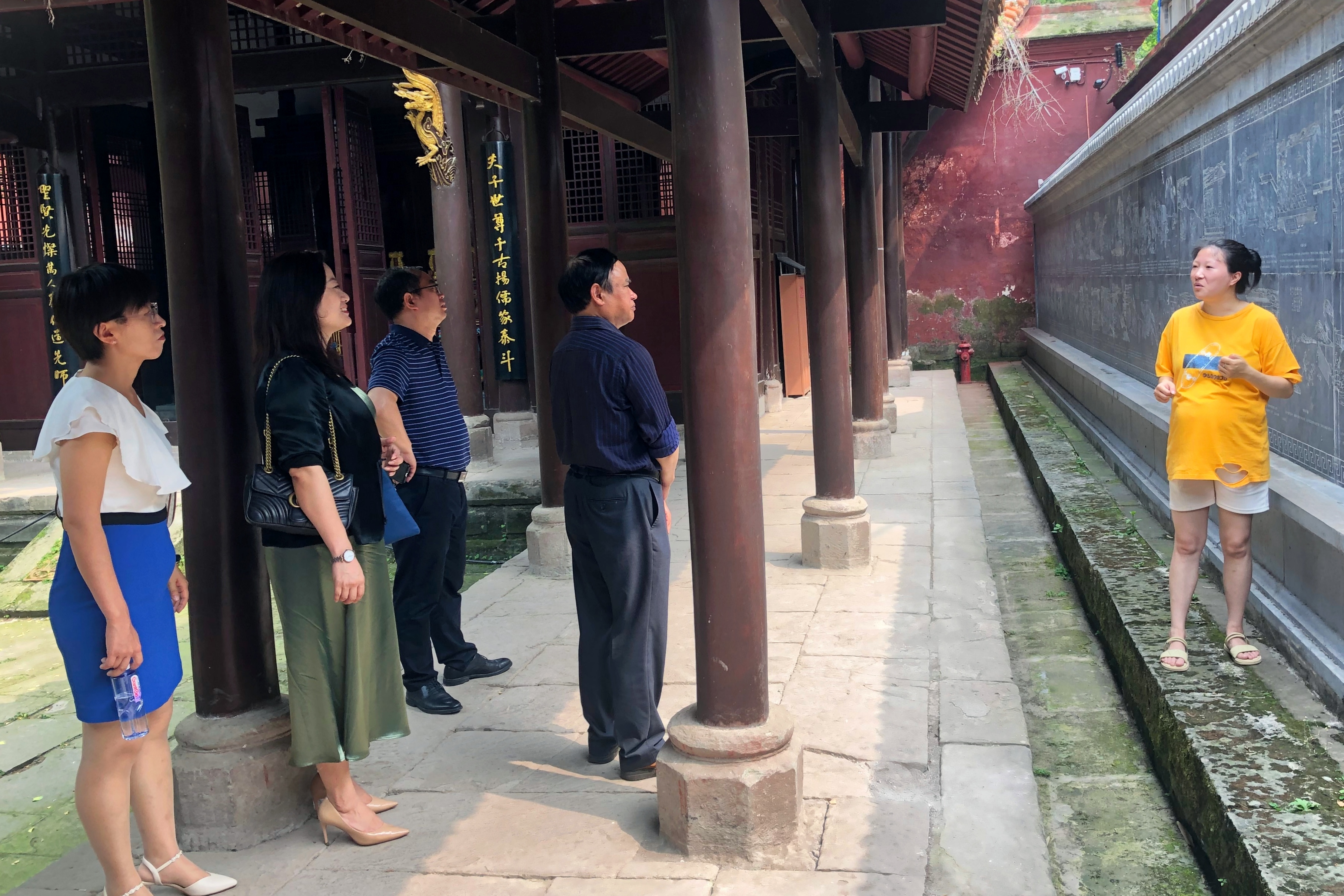 在企业相关负责人的陪同下,我院一行人参观了企业运营的重点项目——资中文庙,全面了解企业的发展情况。紧接着,在座谈会上,企业负责人向老师们介绍了企业的用人需求、未来规划和项目运营情况,并提到,从2021年4月起,企业已经和各学校、培训机构合作开发了一些研学项目,期待我院能够发挥专业优势,为该研学项目的推进提供人才和智力支持。随后,刘书记从我院办学特色、人才培养模式、学生特点等方面进行了全方位的介绍,表示希望以此次交流为契机,进一步深化双方合作,在人才输送和实习基地建设等方面建立起更为密切的联系机制。最后,双方代表在推动产教融合发展、实现校企共赢等方面达成了共识。