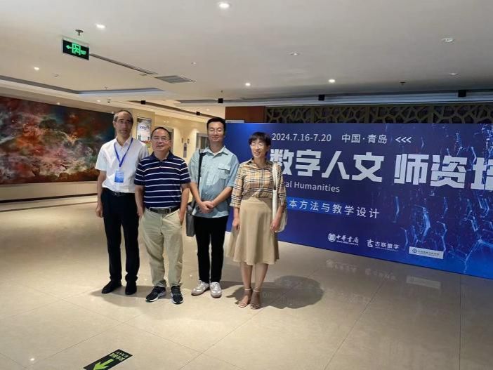 7月16日,我院党委书记周艺、院长助理王昕、数字人文专业负责人马振君、数字人文教研室主任陈康哲等4位老师赴青岛参加由中华书局古联(北京)数字传媒科技有限公司主办、青岛恒星科技学院承办的《数字人文师资培训:基本方法与教学设计》培训会。