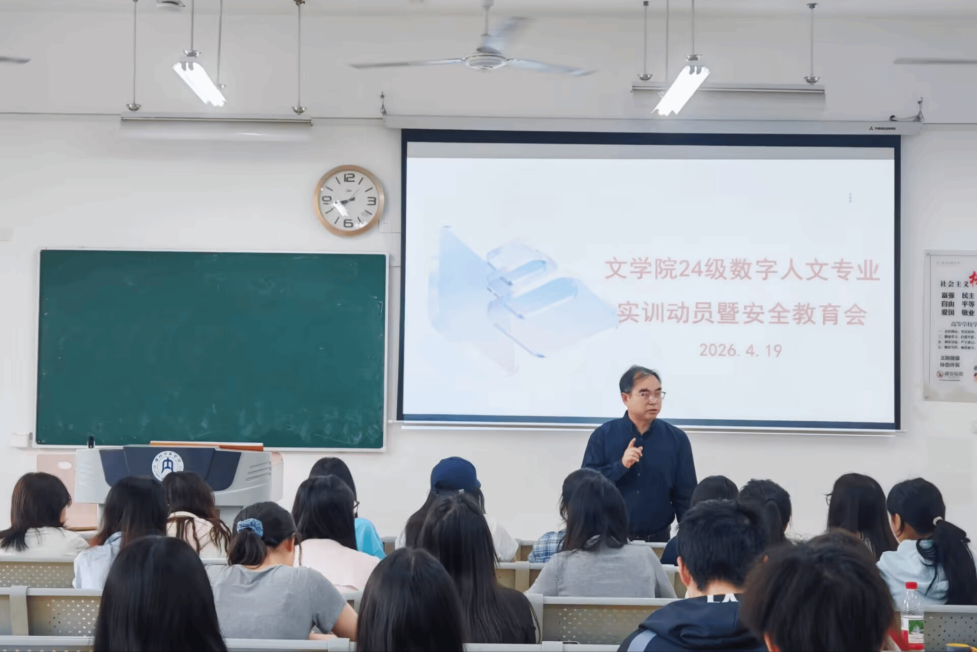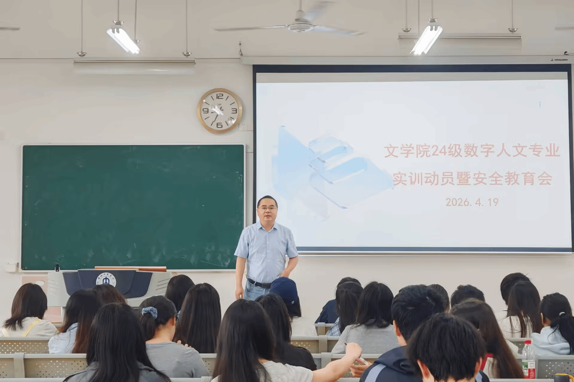 4月19日,我院2024级数字人文专业51名同学远赴四川旅投集团开展专业实训。为保障实训活动顺利开展,临行之际,文学院在明德楼召开专业实训动员会暨安全教育会。学院领导周艺、于军民、王昕出席会议。