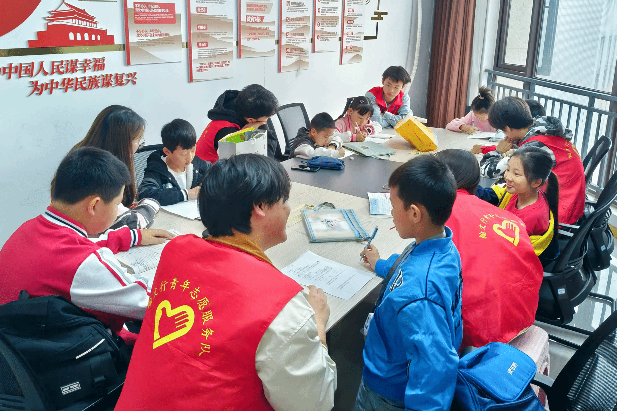活动现场,志愿者们通过对题目的生动讲解,帮助小朋友解决问题、理解知识。小朋友们认真听讲,仔细思考,现场学习氛围浓厚。完成作业后,志愿者同各位小朋友一起阅读书籍、较量棋艺,欢笑声回荡在活动现场。我院参与此次志愿服务活动的入党积极分子刘园园表示:“这次活动让我深刻明白,奉献不在乎事情的大小,每一个微笑、每一次问答都是爱的传递,作为入党积极分子,我们更要以身作则,积极奉献、无私奉献。”活动最后,全体志愿者与小朋友们合影留恋,为这次活动画上了圆满的句号。