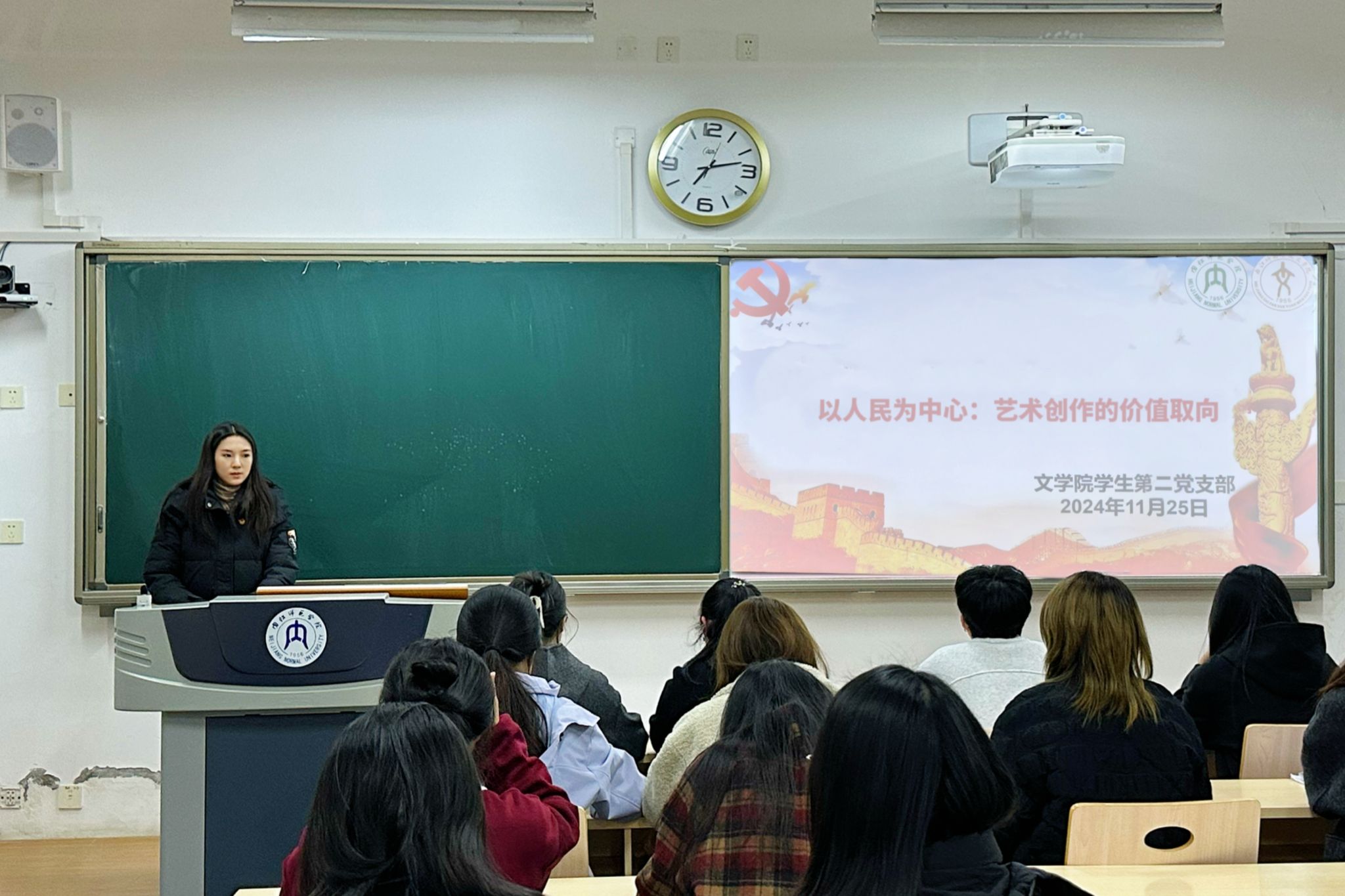 11月25日晚8点,我院学生第二党支部立足文学院学科特色,在明德楼B区104教室以“深入贯彻文艺创作以人民为中心的价值取向”为主题开展党课。