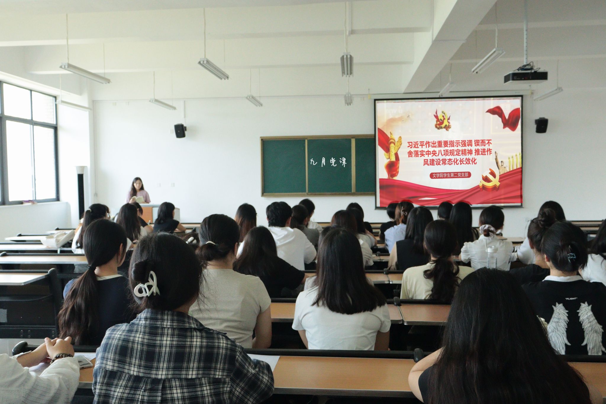 为加强学生党员的作风建设,提高党性修养,9月15日下午2点30分,我院学生第二党支部在弘文楼502会议室组织开展了九月党课学习活动,本次党课以“习近平作出重要指示强调锲而不舍落实中央八项规定精神,推进作风建设常态化长效化”为主题。